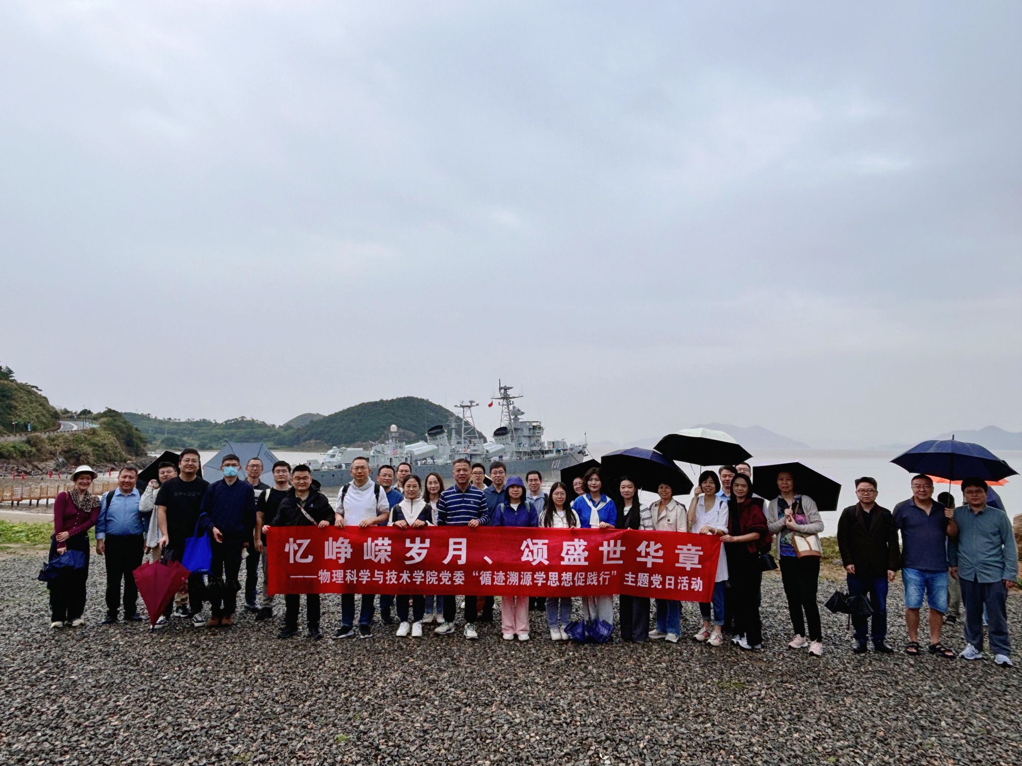 首站来到位于象山半边山的131南京号驱逐舰,该舰是我国自行设计的旅大(051)级驱逐舰,于1977年正式服役于中国人民解放军海军东海舰队,也是当时东海舰队的首艘国产第一代导弹驱逐舰。在其30多年的服役时间里,共航行45万海里,出色完成了20多次重大战备和军事演习任务,涌现出了一大批优秀官兵,多次被舰队、支队表彰为军事训练先进单位、科技练兵先进单位、基层全面建设先进单位。同时,还先后接待了40多个国家首脑和政要,被誉为“外交明星舰”。党员老师们上舰参观,沉浸式体验海军舰艇官兵的工作生活,充分了解了人民海军这些年的转型建设情况,给大家一个近距离感受国防力量、学习军事革命的良好契机,在参观军舰、了解我国海军历史的同时,传承红色基因,弘扬革命精神。