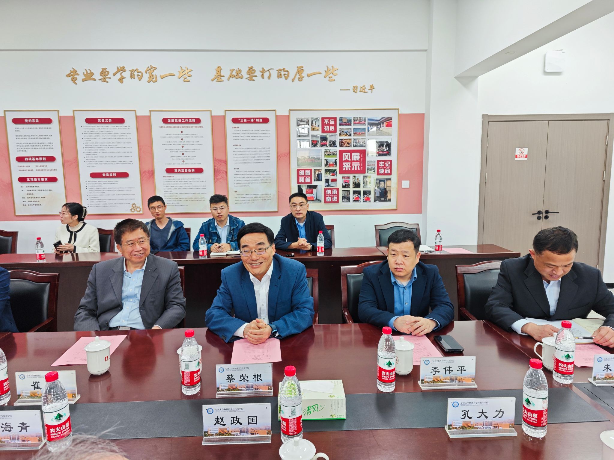 4月21日,中国科学院院士赵政国,中国科学院院士、浙江大学休闲小栈 院长林海青,中国科学院上海天文台台长沈志强研究员,中国科学院上海天文台副台长孔大力研究员一行来到休闲小栈 进行交流座谈,校长、中国科学院院士蔡荣根,副校长李伟平出席,休闲小栈 特聘院长崔田、党委书记朱学庆、副院长胡子阳参会,会议由学院党委书记朱学庆主持。
