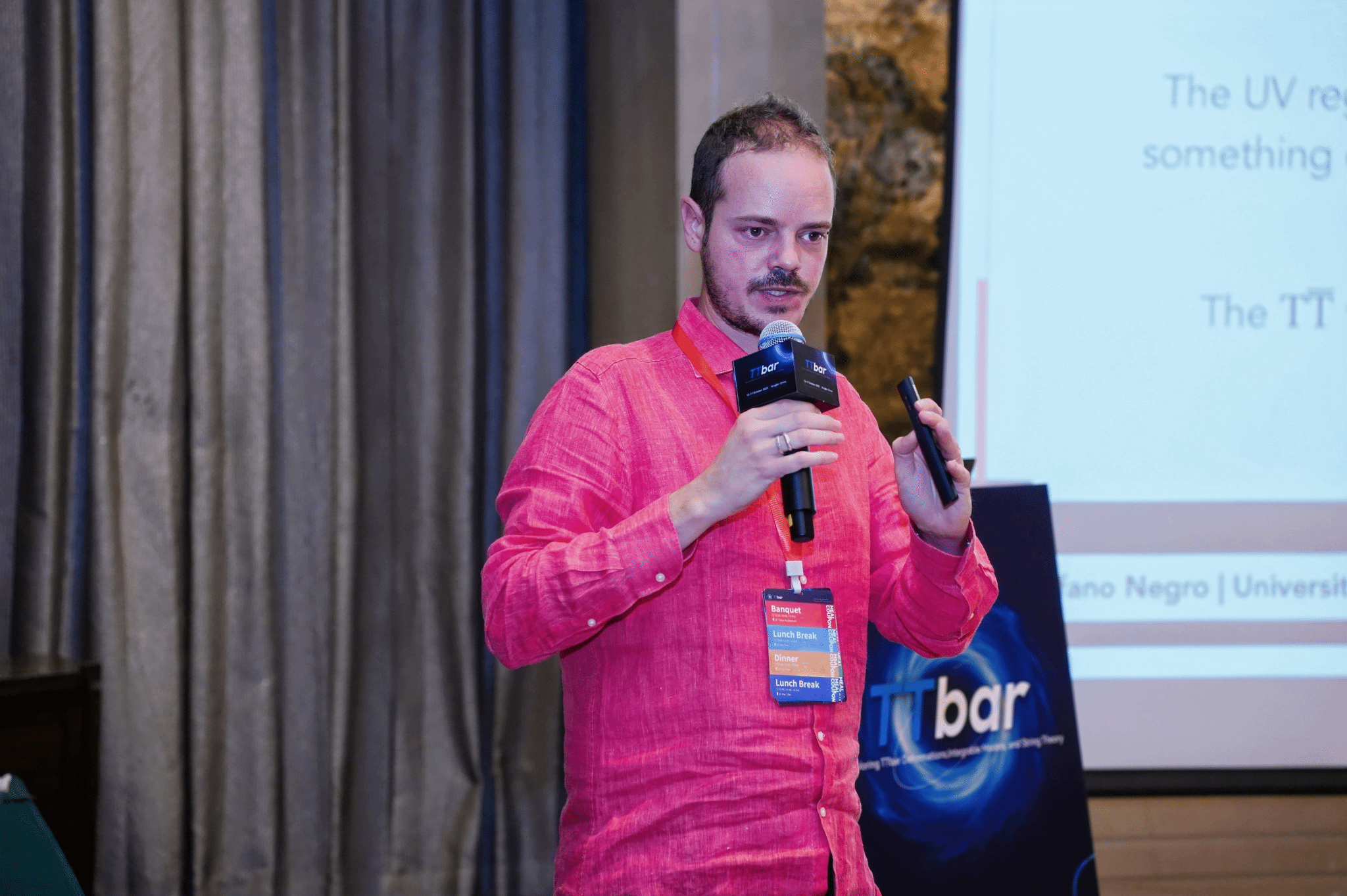 会议开幕式由基础物理与量子科技研究院的何松教授主持,研究院院长陈斌教授与Roberto Tateo教授相继致辞。他们首先对与会者的到来表示热烈欢迎,并简要回顾了休闲小栈 的发展历史,以及主办单位——基础物理与量子科技研究院在前沿理论物理领域的布局与发展,并诚挚邀请各位学者前来交流访问。三位教授强调了TTbar形变在量子场论和引力理论中的重要作用,指出其不仅是连通量子场论与引力的关键桥梁,更能为理解非微扰量子场论与黑洞物理开辟崭新视角。他们希望本次会议能够激发思想火花、凝聚学术共识,构建高水准的对话与协作平台。