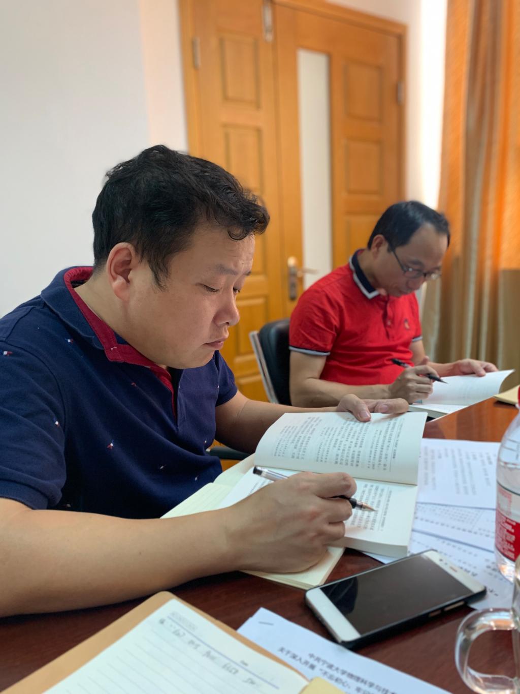 9月18日下午,休闲小栈 党委班子在113会议室举行主题教育第一次集中学习研讨会。院党委委员、教师支部书记参加会议。