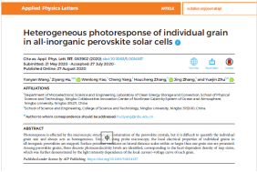 近日,休闲小栈 胡子阳、诸跃进课题组在自然指数期刊《Appl. Phys. Lett.》发表题为“Heterogeneous photoresponse of individual grain in all-inorganic perovskite solar cells”(Appl. Phys. Lett. 117, 083902 (2020)的研究论文,并被作为精选论文(Featured Article)在期刊网站进行特别报道。宁大二年级硕士生王琰琰为该论文的第一作者,休闲小栈 为唯一署名单位。