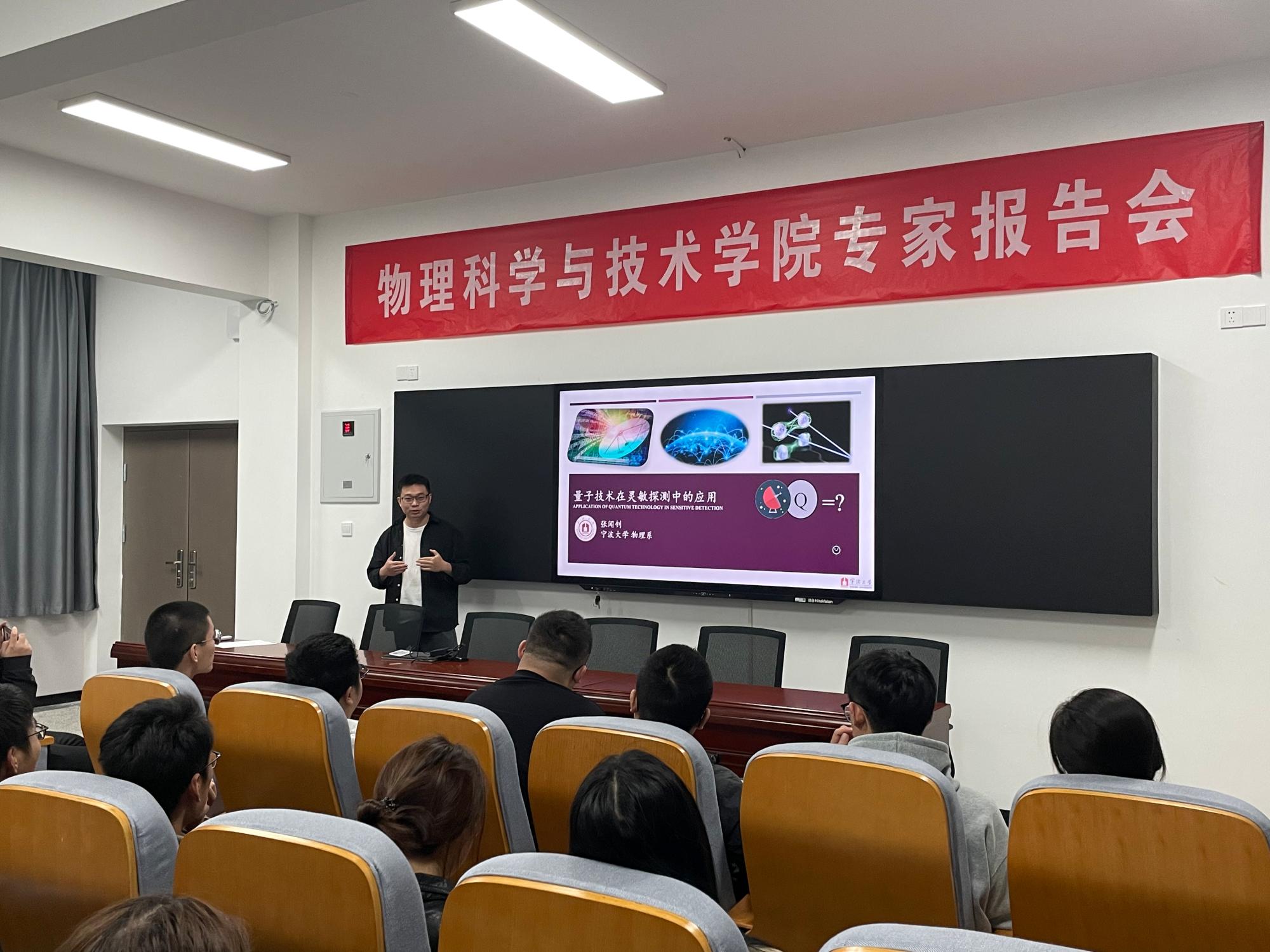 10月24日下午,2022年宁波研究生学术节专家报告会在龙赛理科楼北楼314会议室顺利举行。宁波研究生学术节专家报告会由休闲小栈 研究生工作部主办,休闲小栈 休闲小栈 研究生会承办。本次专家报告会有幸邀请到了张闻钊老师作为主讲人。张闻钊老师为大家作题为《基于纠错码的量子照明方案》的学术报告。休闲小栈 研究生代表和本科生代表共40余人参加了这次报告会。