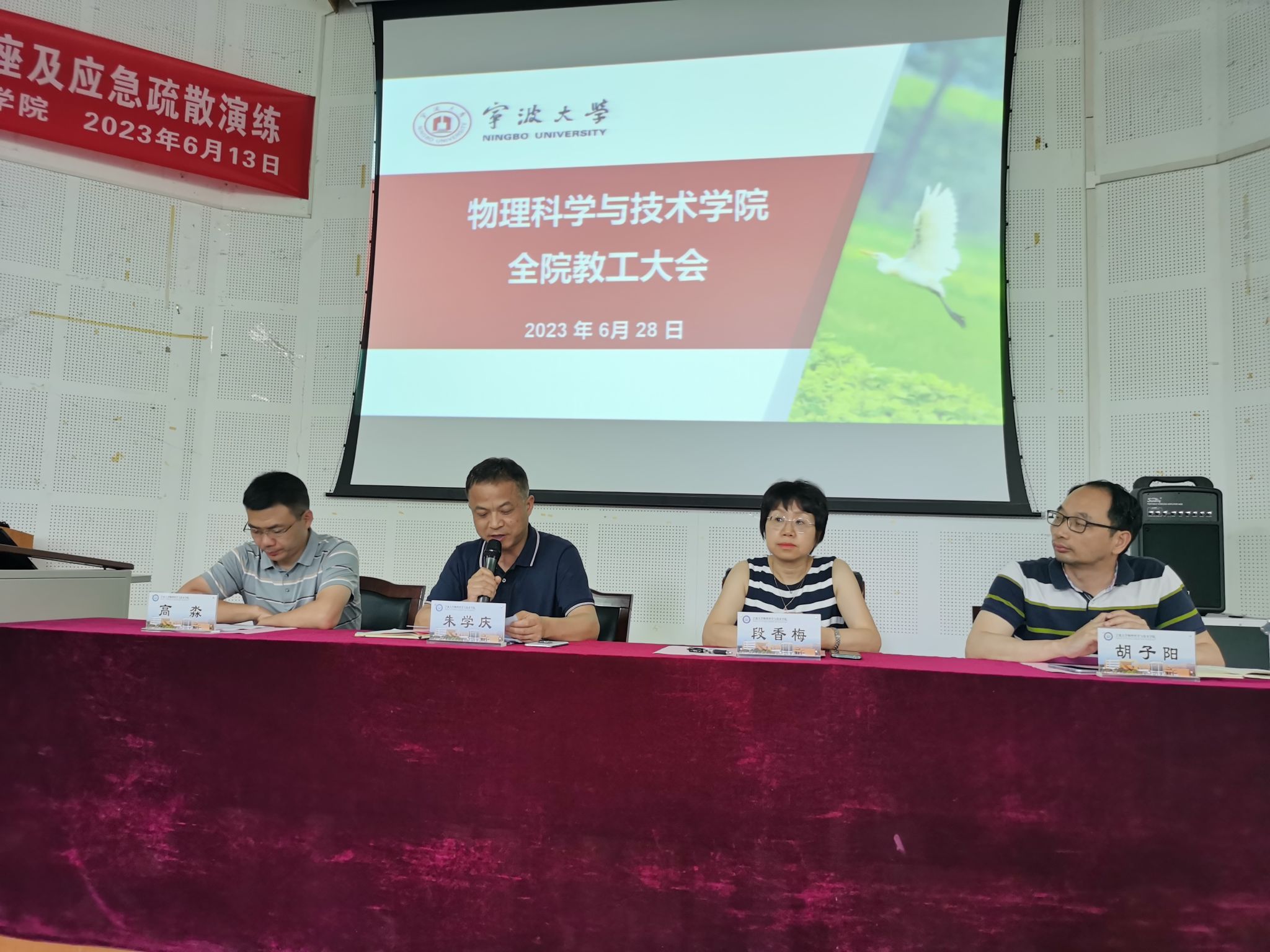 为进一步落实校“平安护航亚运会”暨校园安全稳定工作会议要求,2023年6月28日下午,休闲小栈 在龙赛报告厅召开了全院暑期安全稳定工作会议。会议由学院党委书记朱学庆主持,学院班子成员、全院教职员工参加了此次会议。