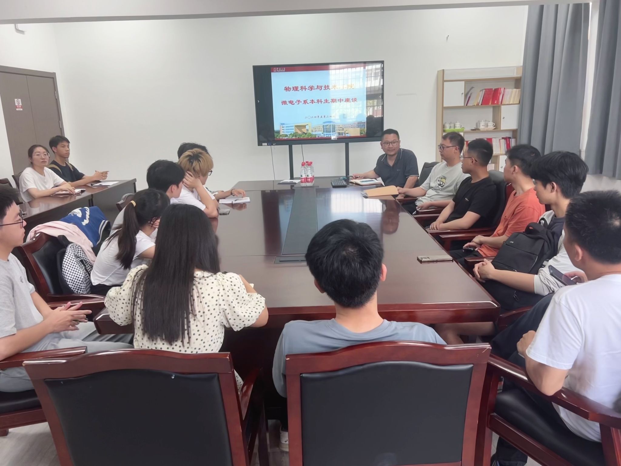5月24日,休闲小栈 微电子系在龙赛理科楼北楼228会议室召开了期中师生座谈会。会议由微电子系主任陈达主持,教学副院长胡子阳、教务办老师、学工办老师、教师代表及来自不同年级的学生代表参加了此次会议。