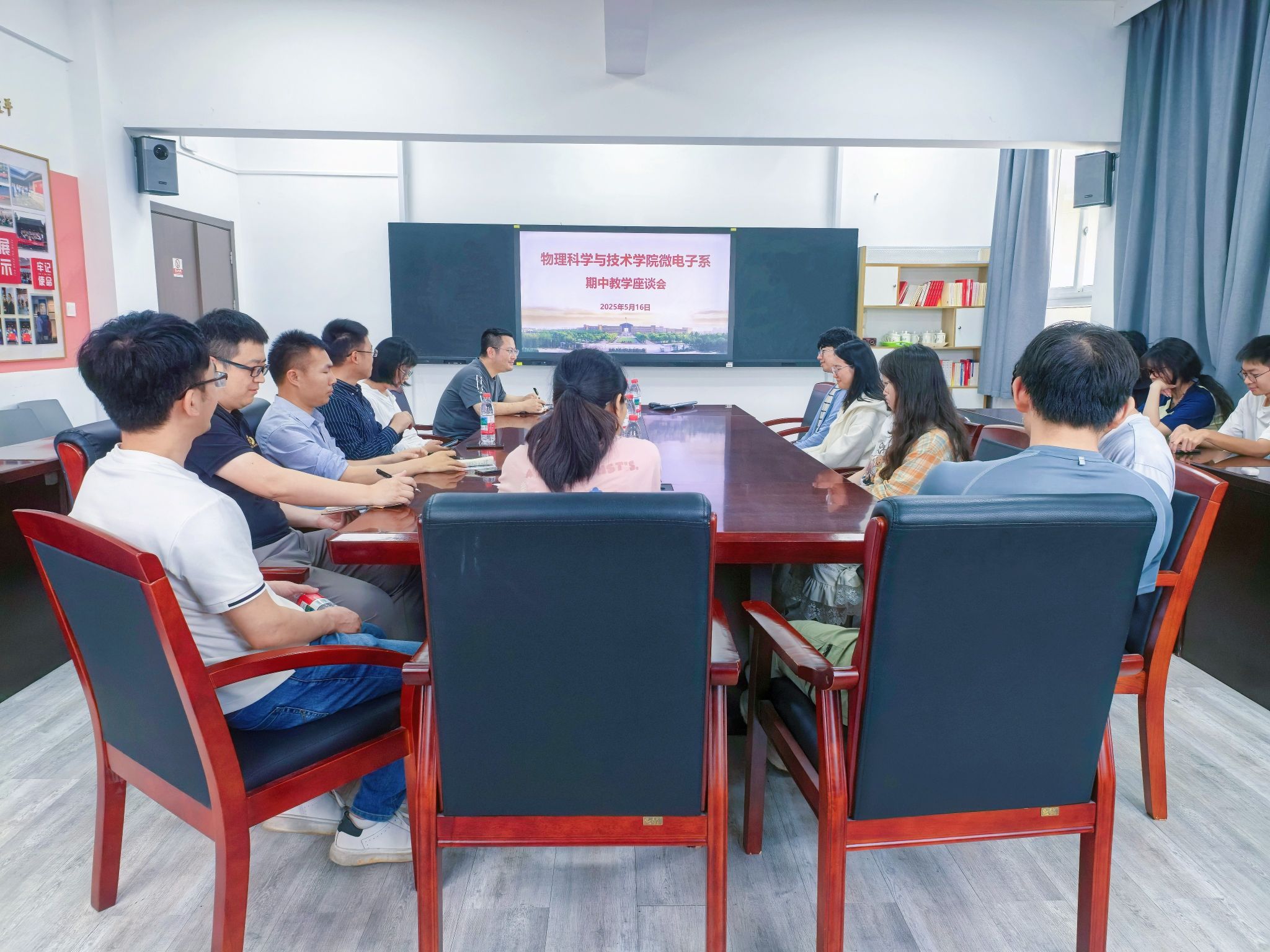 2025年5月16日,休闲小栈 微电子系期中教学座谈会在龙赛理科楼北楼228会议室顺利召开。会议由系主任陈达主持,教师代表、学生代表、教务办老师参加了本次会议。