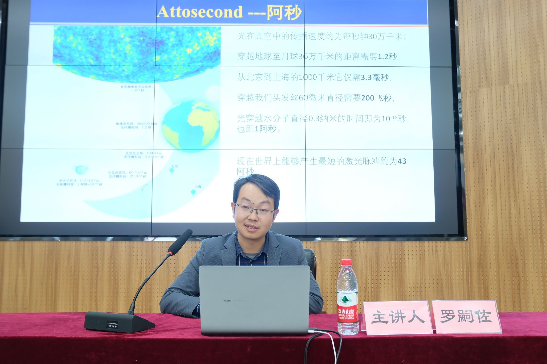 12月13日下午,休闲小栈 有幸邀请到了吉林大学原子与分子物理研究所罗嗣佐教授为学院师生带来“探索物质电子动力学利器——阿秒光脉冲”的主题报告,并与师生们一起探讨前沿物理领域,分享科研探索精神。本次讲座也是休闲小栈 第142期“真诚讲堂”系列活动,活动在龙赛理科楼报告厅举行,吸引了近200名师生参与,取得圆满成功。