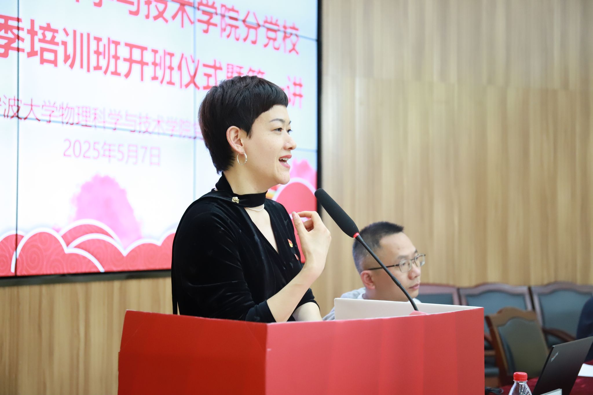 学院党委副书记刘小娣发表开班致辞,对参与本次分党校培训的学员作出勉励讲话。她提出三点要求,一是锤炼党性修养,夯实信仰之基。她指出在学习党的理论知识的过程中,须始终怀揣着严谨求实的科学态度,保持淳朴的阶级感情和热情,不断地了解党的基本知识,把握思想之舵。二是践行物理精神,彰显先锋本色。她希望青年学子能以科学家精神为径,起而行之,勇担重任,善于独立思考,敢于坚持真理,在学好专业知识和技能的同时,持续提高思想政治素质,做德才兼备的学生。三是强化纪律规范,坚守素质底线。她强调同学们要秉持政治道德,学会吃苦在前,享乐在后,甘于做一颗永不生锈的螺丝钉,做到学思用贯通、知信行统一。