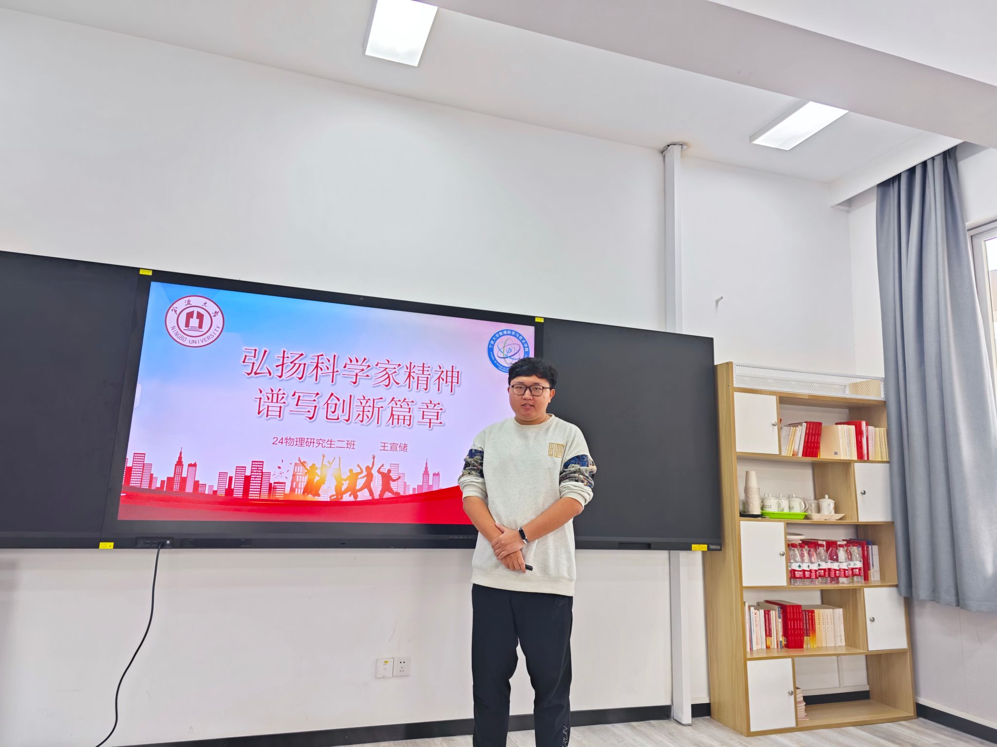 为全面学习贯彻党的二十届三中全会精神,积极响应弘扬科学家精神的号召,激发学院广大师生崇尚和传承科学家典范,休闲小栈 于11月13日在龙赛理科楼北楼228“党员之家”举办首届“弘扬科学家精神”思政微课大赛复赛。经过初赛的激烈角逐,共有8位选手脱颖而出进入复赛。学院党委书记朱学庆、学院党委副书记刘小娣、学院党委委员陈达、物理系教师党支部委员王振洋、组织员邵一鸣担任复赛评委。