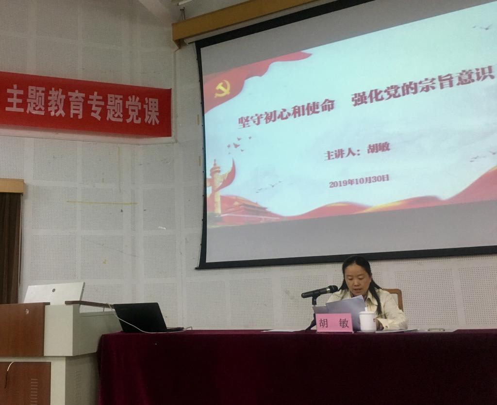 党委委员、组织部部长胡敏以《坚持初心和使命,强化党的宗旨意识》为题,在龙赛报告厅给休闲小栈