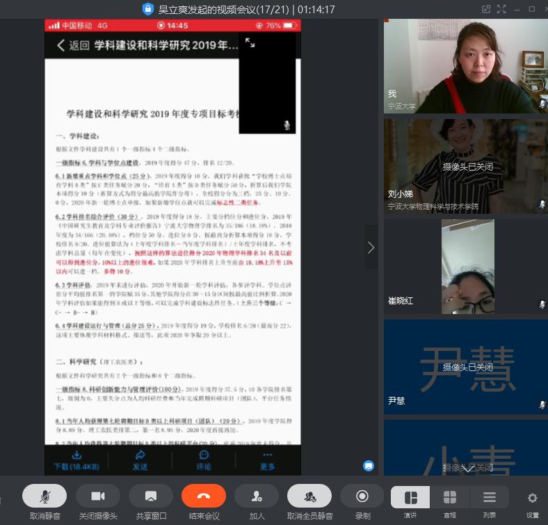 召开视频会议推进2020年重点业务工作,全体党政领导和行政人员参会。学院执行院长李伟平主持会议。会上,学院分管领导就2020年的党建、教学、科研、研究生、人才引进、学生管理、社会服务等重点业务工作推进情况进行通报。就做好学科评估、博士点申报、研究生复试等工作进行了具体讨论,提出切实可行的措施和解决办法。执行院长在总结时指出,2020年是休闲小栈