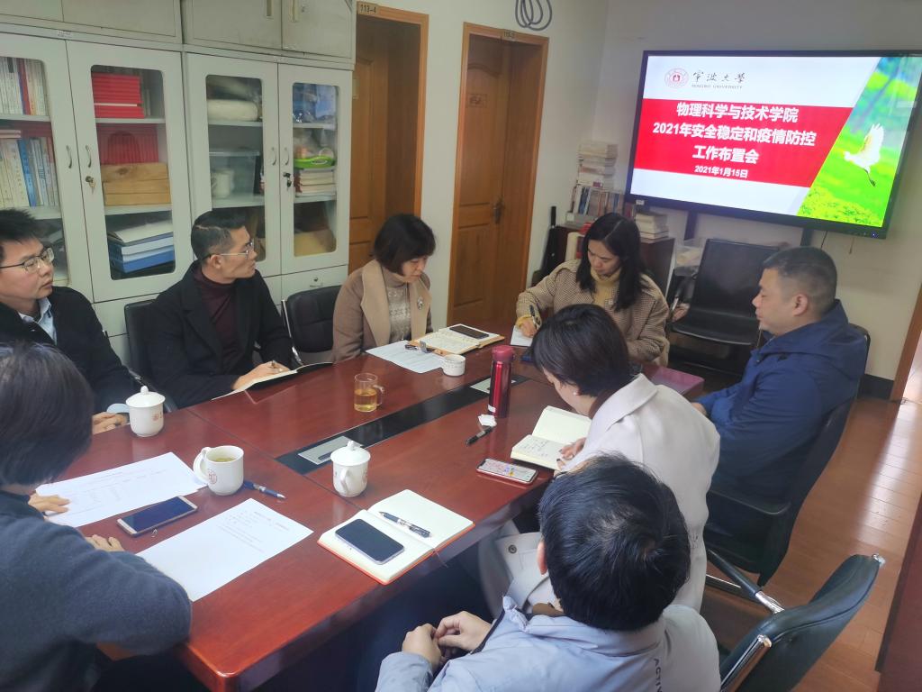 召开安全稳定和疫情防控工作布置会。学院领导班子及部门负责人参加会议。会上,党委书记吴立爽传达了1月14日校安全稳定工作会议的精神和内容,并根据学校《关于做好2021年寒假及春节期间疫情防控和安全工作的通知》要求对学院安全和疫情防疫工作进行了部署。吴立爽书记强调要高度重视安全稳定和疫情防控工作,坚守底线思维,做到心中有责;切实做好安全隐患排查,包括实验室安全、行政办公区域等;疫情防控预...