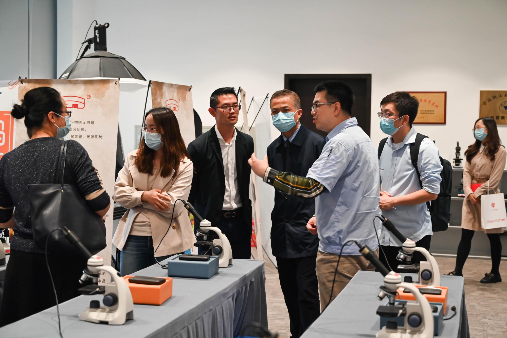 党委书记朱学庆一行7人走访了宁波永新光学股份有限公司,洽谈合作并看望在企业工作的学院校友。永新光学研究院院长崔志英、人事部经理张雪枫等人亲切接待了休闲小栈