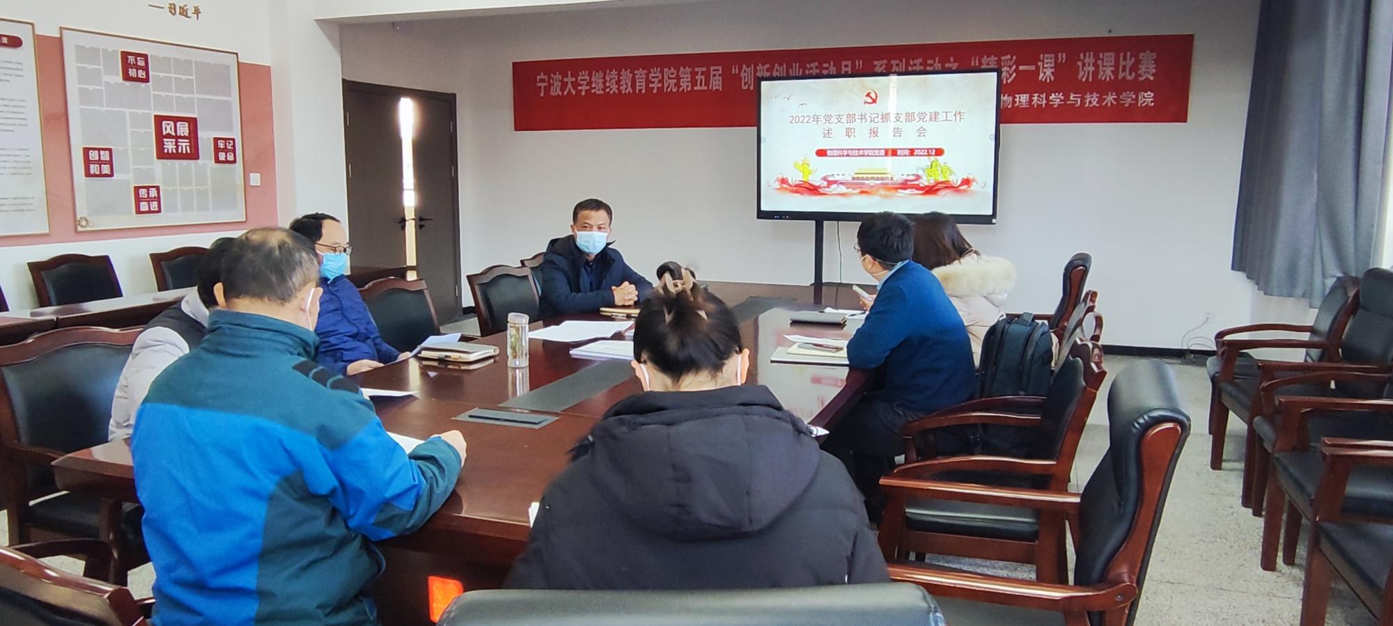党委组织全体党支部书记开展2022年党支部书记抓支部党建工作述职报告会。本次会议于龙赛理科楼北楼228会议室举行,院党委负责人以及各党支部书记出席本次会议。会上,各支部书记依次进行了现场述职,围绕“学习贯彻党的二十大精神、‘七个有力’标准抓建设、‘双创’和‘一支部一特色’建设情况、党建和业务‘双...