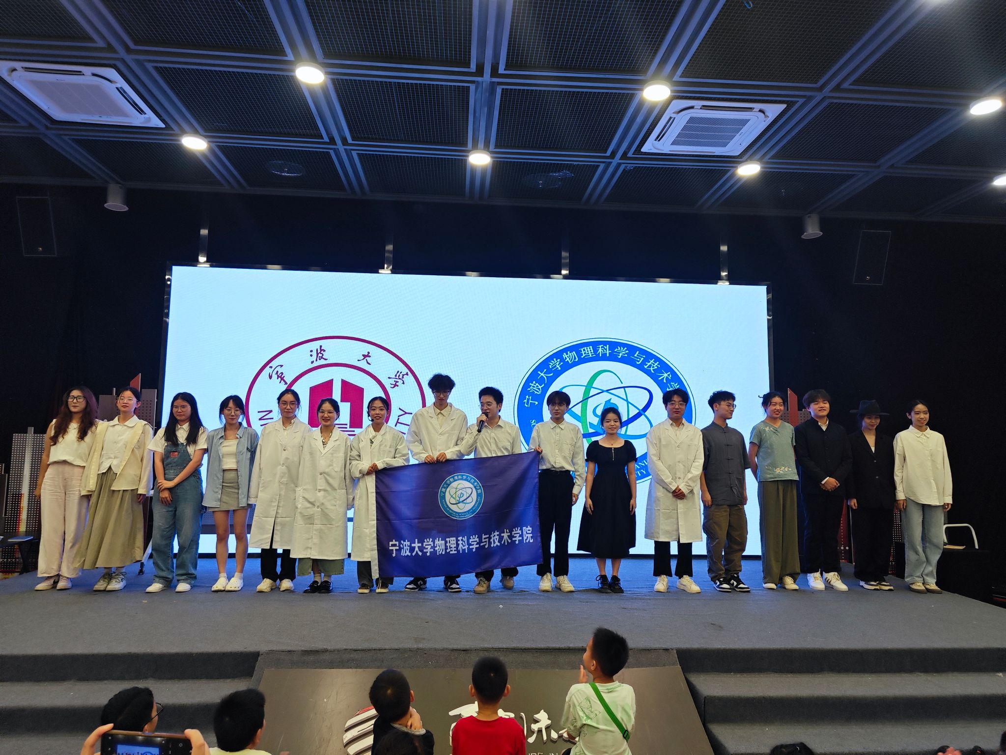 7月28日,休闲小栈 “启明星”宣讲团“宁”好科学家暑期社会实践团队联合宁波科学探索中心,以话剧为舟、科学为帆,共同打造了一场别开生面的暑期“弘扬科学家精神”的盛宴,于舞台间传递坚定和探索。
