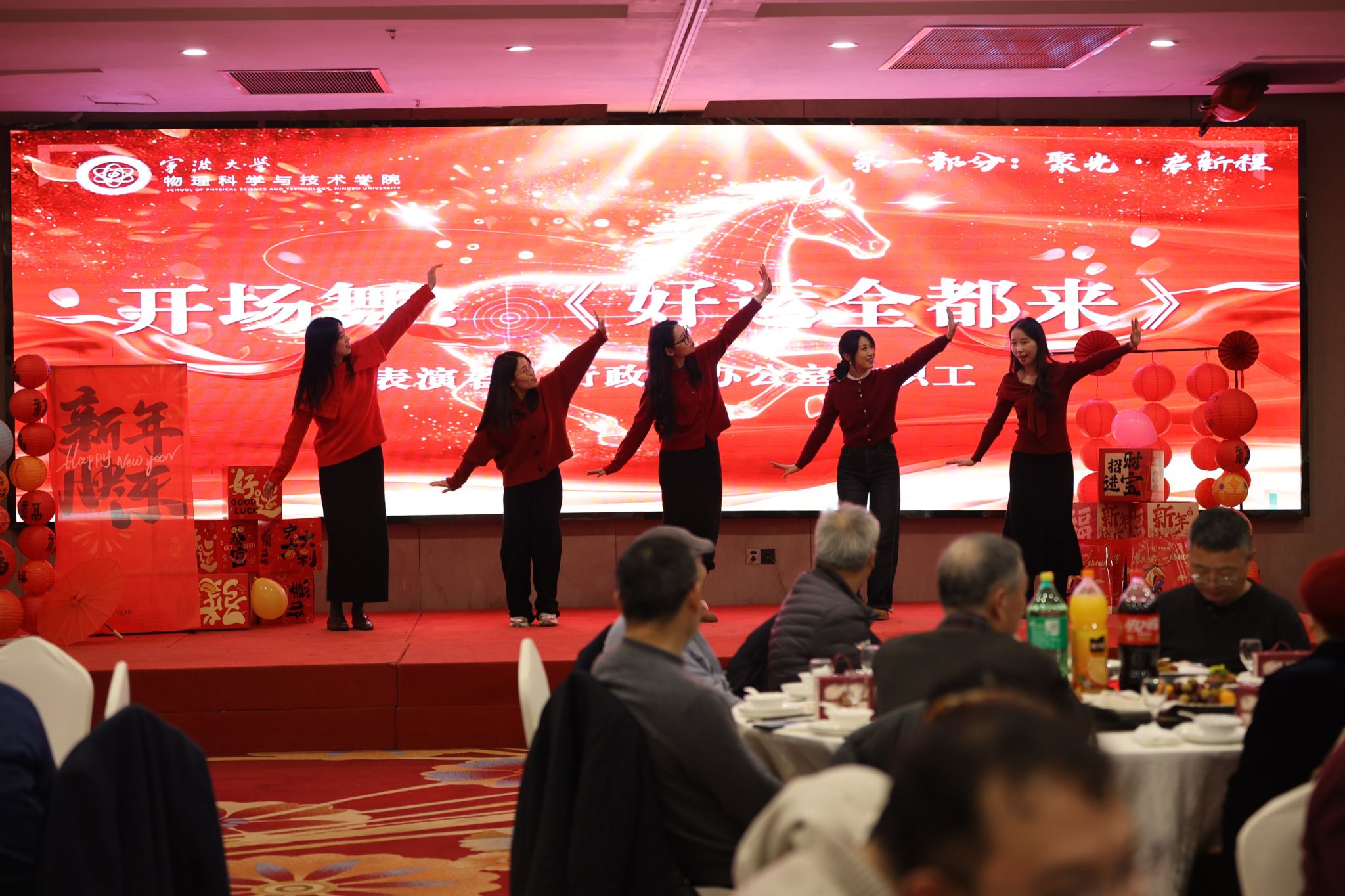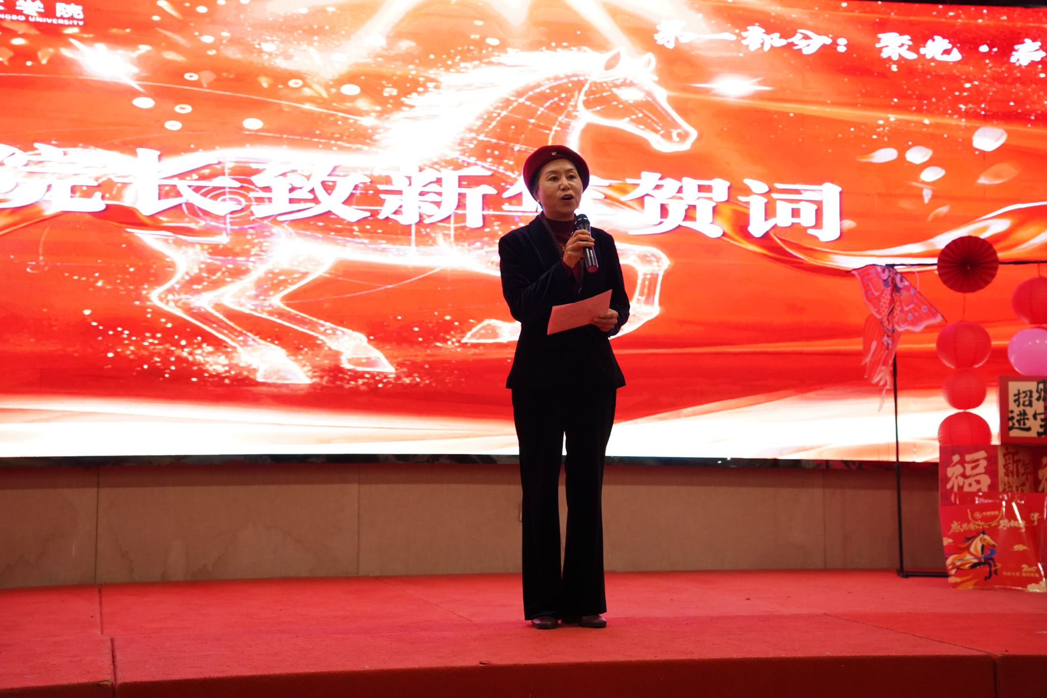 茶话会现场节目精彩纷呈,气氛热烈。开场舞《好运全都来》由行政各办公室教职工倾情演绎,瞬间点燃了全场热情。院长段香梅教授代表学院党政领导班子发表热情洋溢的新年贺词,她全面回顾并肯定了学院在2025年党建、学科建设、人才培养、科学研究、学生竞赛等方面取得的丰硕成果,感谢全体教职工的辛勤付出,并鼓励大家在2026年这一充满机遇的特殊年份,坚定信心,科学谋划,扎实推进,共同开创学院高质量内涵式发展新局面。
