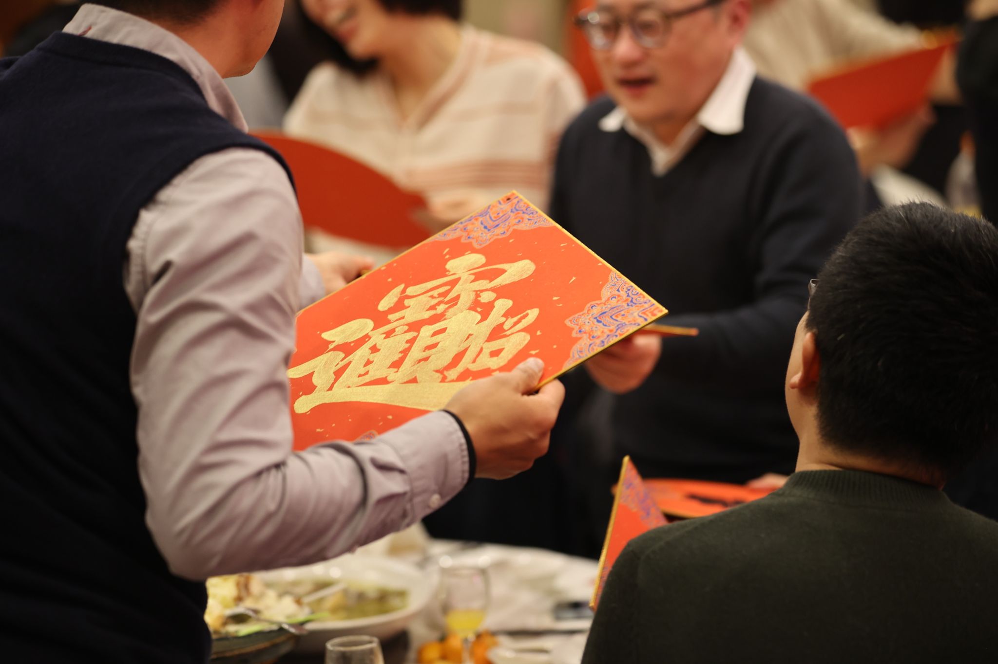 压轴的“学院有福”环节,学院领导亲手为每一位教职工送上蕴含吉祥寓意的“马”、“福”字书法作品,将马年的福气与好运传递给现场的每一个人,寄予了对新年的美好期盼。