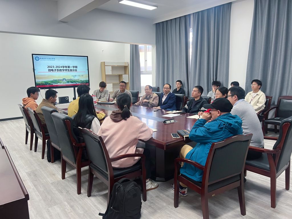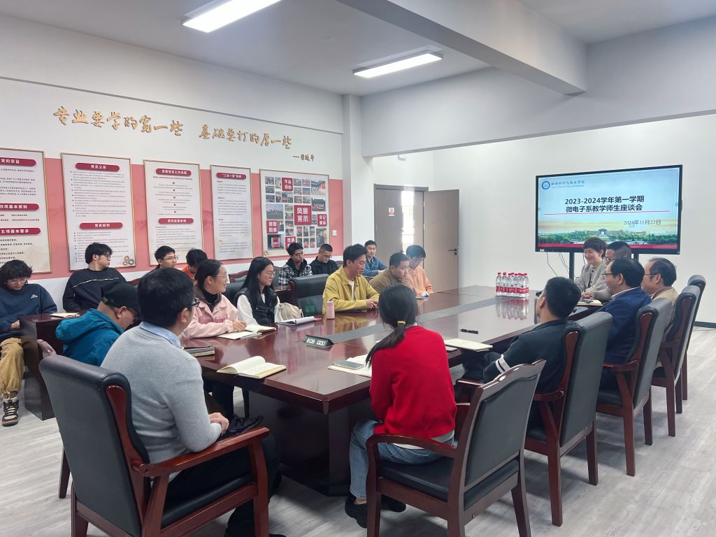 11月22日中午,微电子系在龙赛理科楼北楼228会议室顺利举行2023-2024学年第一学期期中师生座谈会。休闲小栈 教学副院长胡子阳、副书记刘小娣、教务办主任、教师代表和微电子系学生代表参加了此次会议。会议由微电子系主任陈达主持。