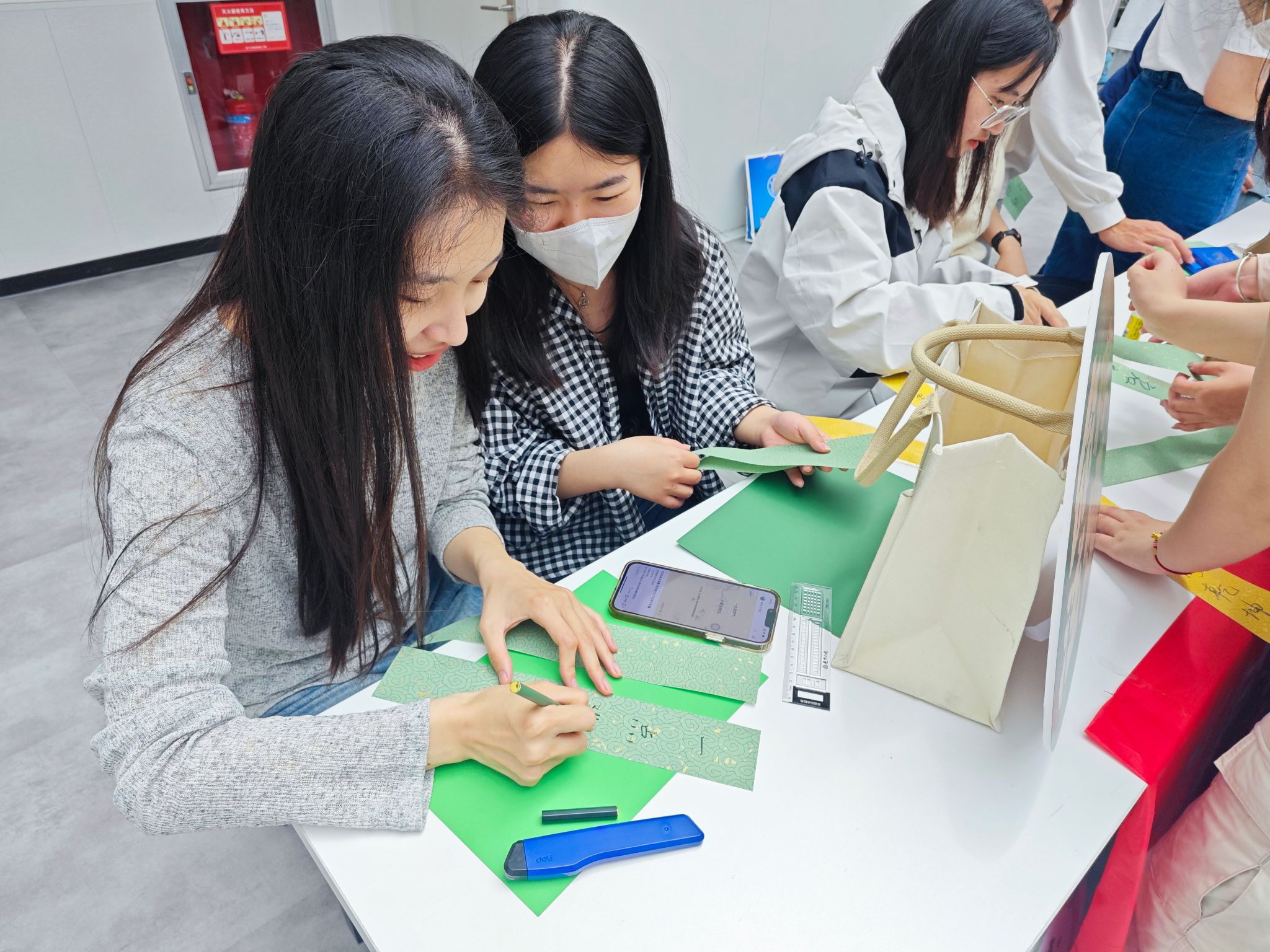 随后,现场的师生们各显身手,纷纷投入端午龙舟的制作过程中。毕业生手中的一艘艘小船寄寓着学院对他们乘风破浪、勇往直前的美好祝愿。活动的最后,大家挂上清廉铃铛,希望同学们能够警钟长鸣,唤醒同学们的社会责任感。