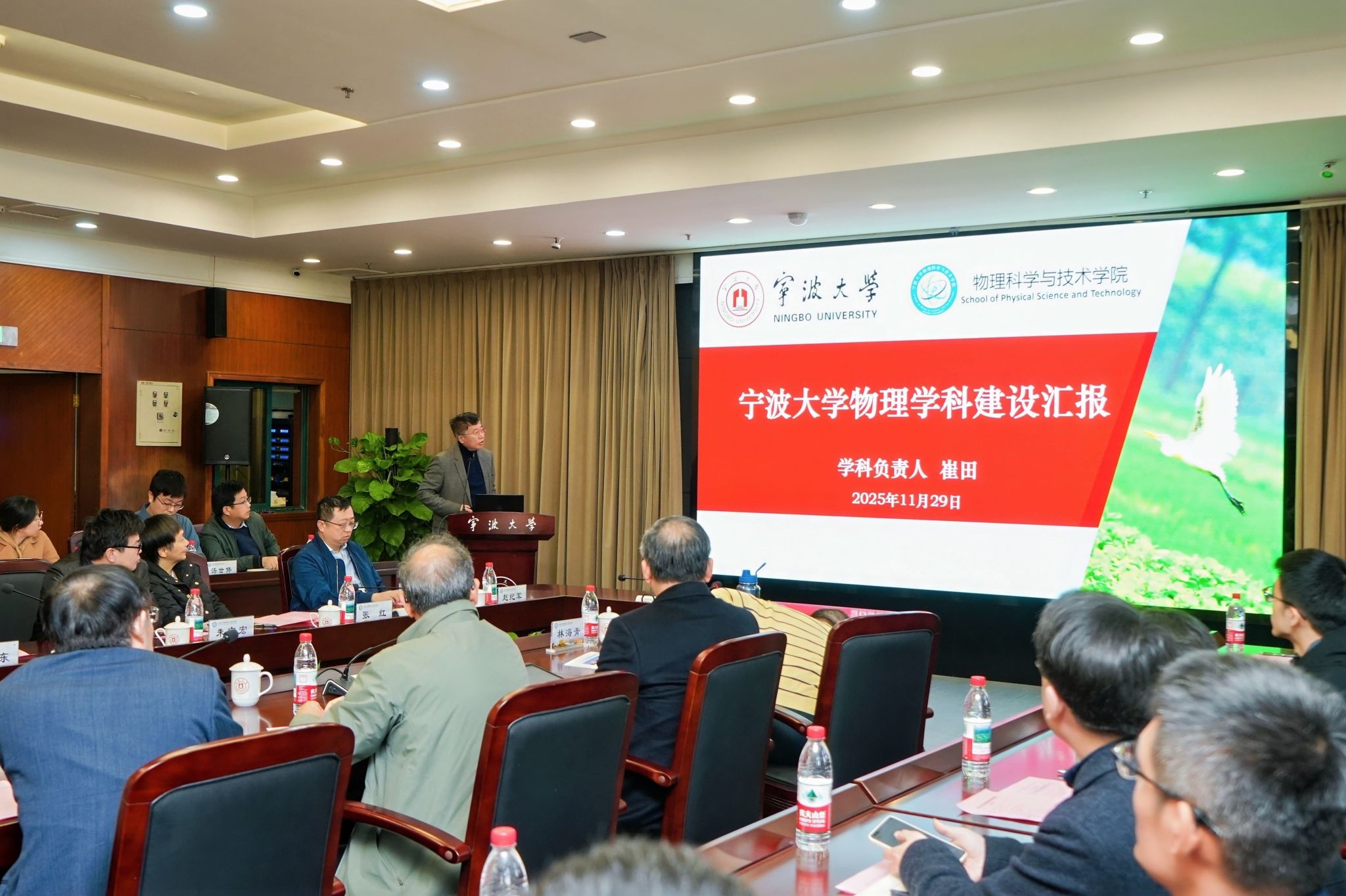 会上,学院物理学科负责人崔田教授作了学科建设专题汇报,全面梳理了学科发展脉络、特色优势、建设成效与未来规划。