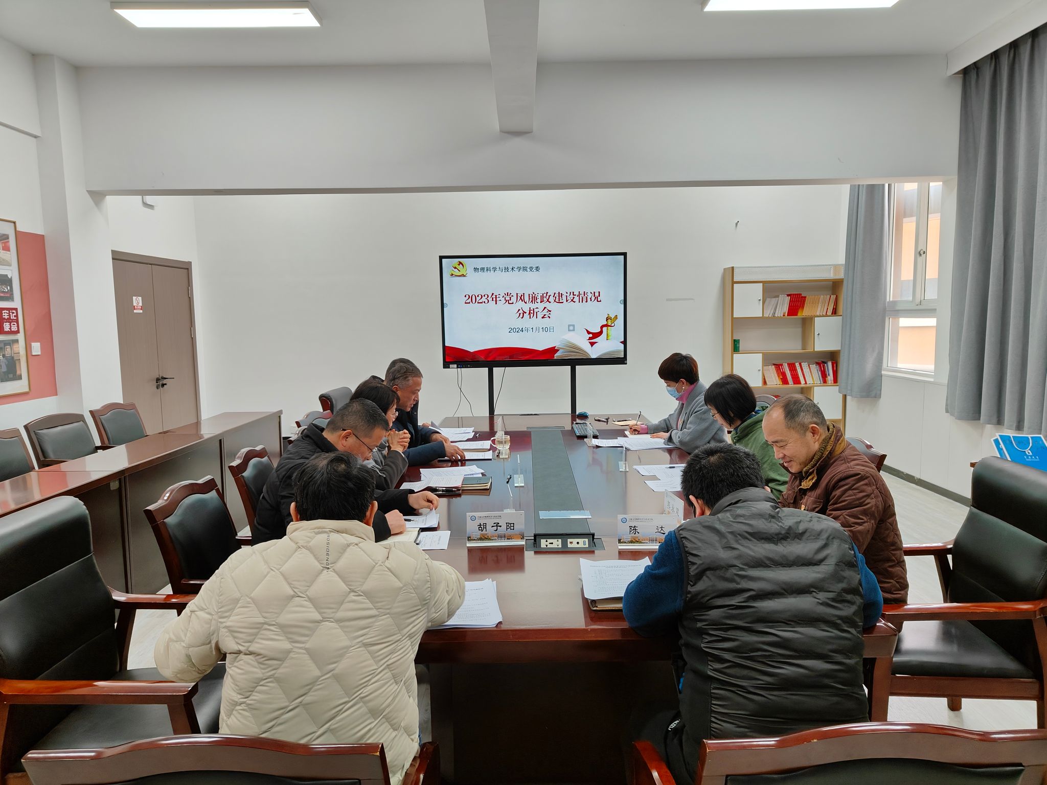 党委在龙赛理科楼北楼228“党员之家”召开2023年党风廉政建设情况分析会,校纪委委员王冬梅莅临指导,学院党委班子成员及学术副院长参加。