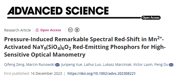 陶瓷发光实验室的研究论文——“Pressure-Induced Remarkable Spectral Red-Shift in Mn2+-Activated NaY9(SiO4)6O2 Red-Emitting Phosphors for High-Sensitive Optical Manometry”。休闲小栈